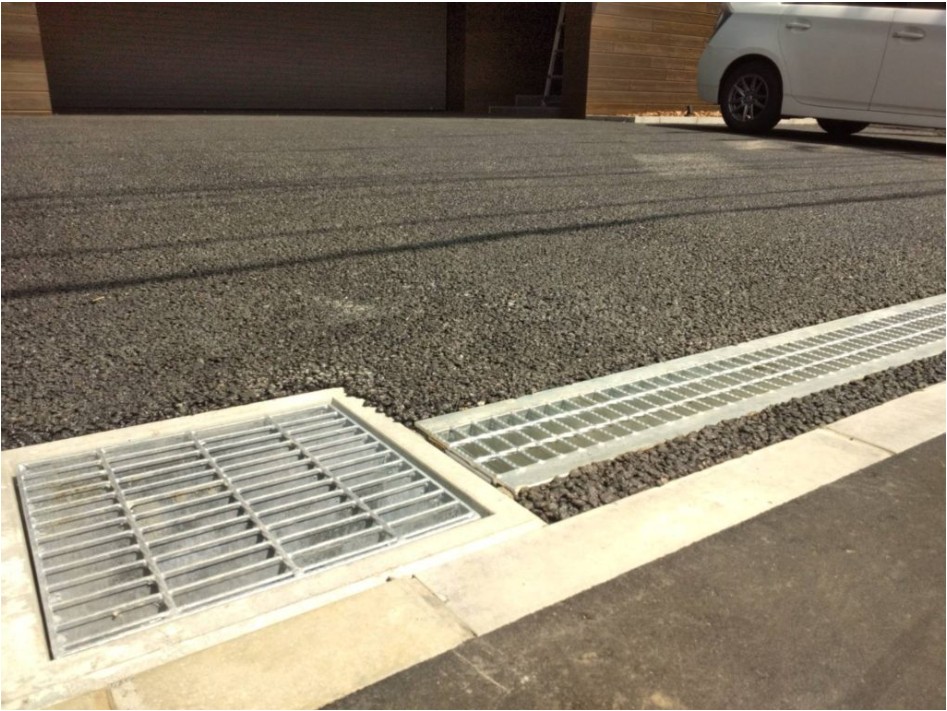 今回のモデルハウスで使用したアスファルトは「透水性アスファルト」というものです。