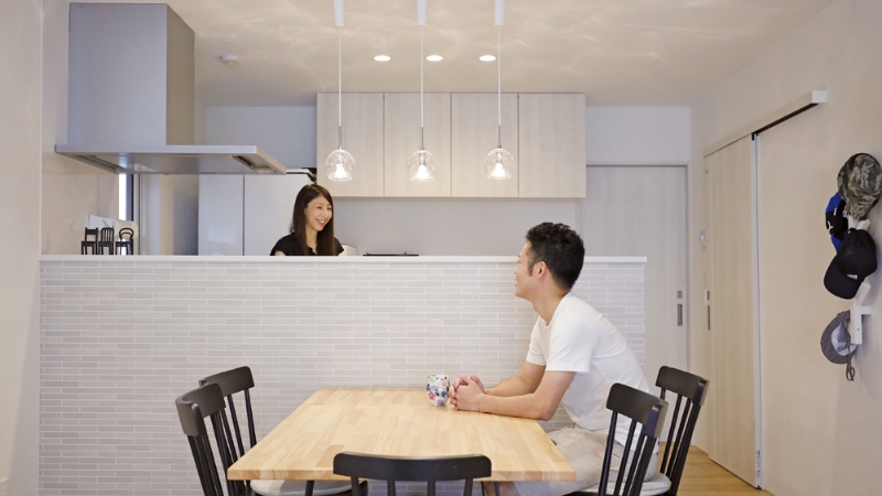 実際に暮らしてみて、住み心地はとても快適です。家事のしやすさを重視して設計したキッチンは、夫婦で同時に作業しても窮屈さがなく、ストレスフリー。収納計画も細かく考えていただいたおかげで、家全体がすっきり片付きます。生活動線もよく考えられており、家事や育児の負担が軽くなりました。