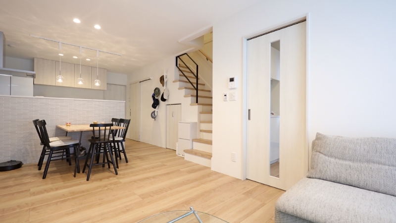 Hさまご夫妻と愛犬がともに心地よく過ごせる、機能性とデザイン性を両立した空間が完成しました。