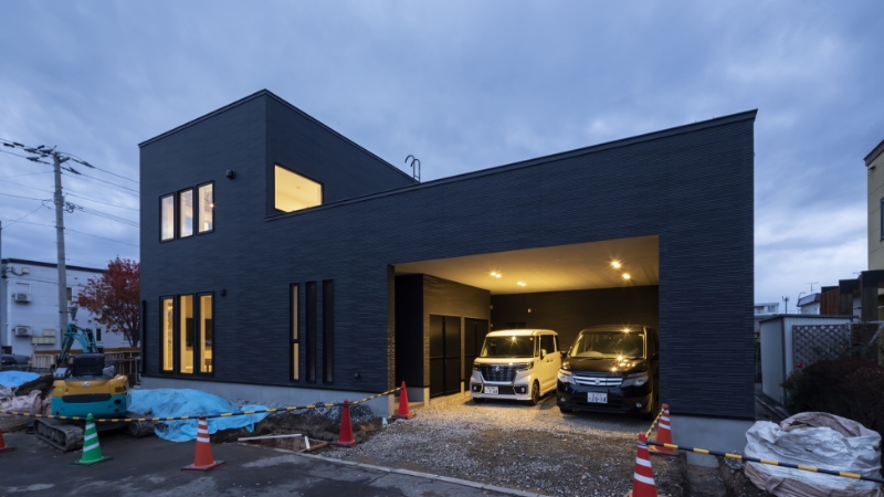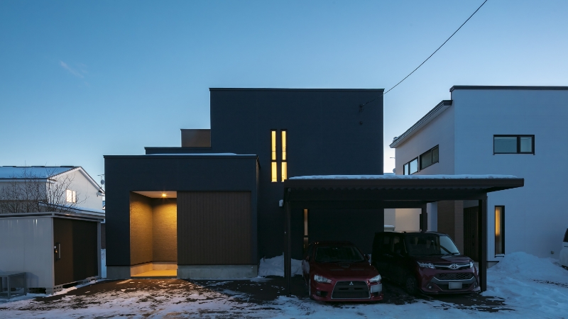 カーポート付きのシックな外観
