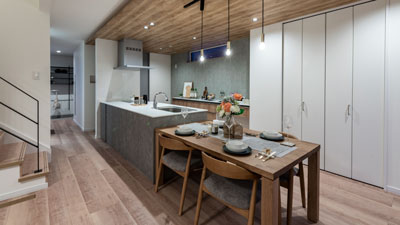 床下からの冷気を遮断する「基礎断熱工法」を採用。土間下と外周面を二重に断熱し、足元から快適さを守ります。