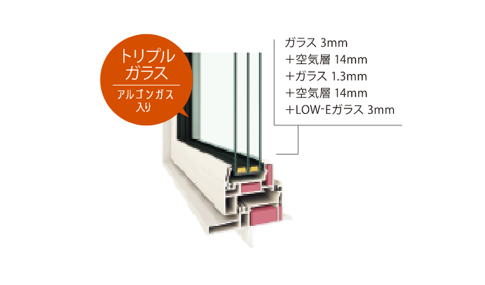 アルゴンガスを封入した3層のガラスサッシを採用。国内最高水準の断熱性能で、冬の暖かさも夏の涼しさも逃しません。