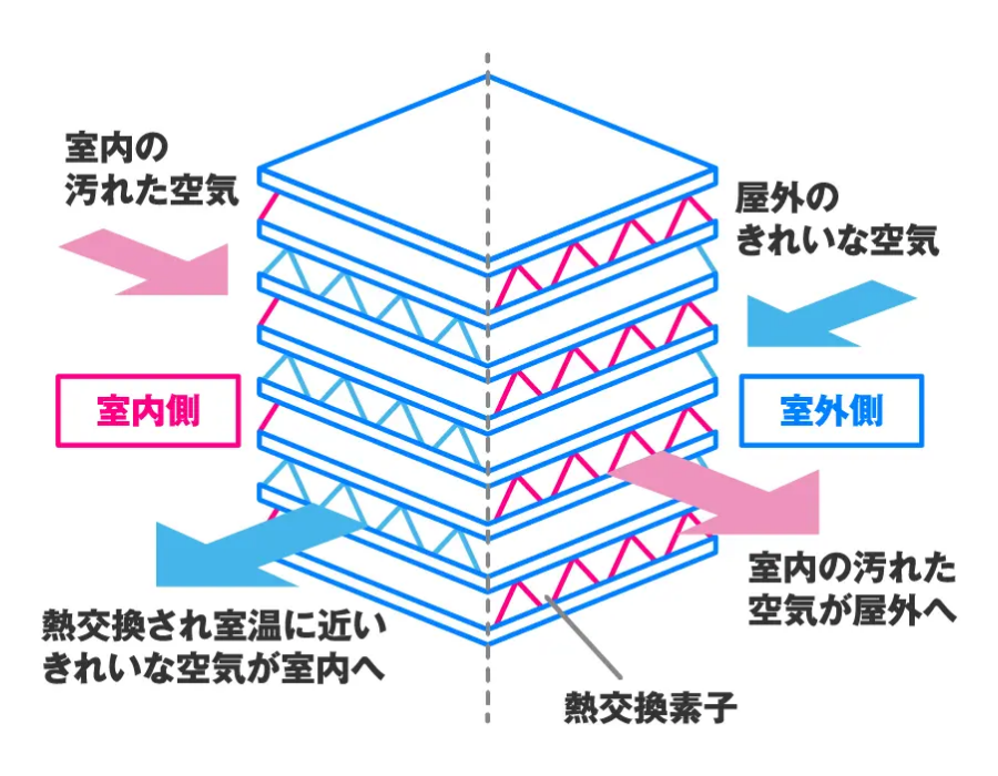 たとえば、寒い冬や暑い夏でも、そのまま外の空気を取り込むことはないため、必要以上にエアコンで温度調節する必要がなく、エネルギー効率が上がります。